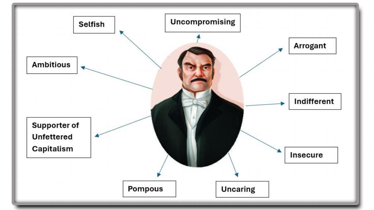 • He is wealthy but his status is not yet certain and so he strives to secure his position in society through marriage and titles – he is hoping for a title to be awarded to him soon.